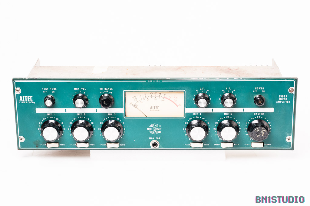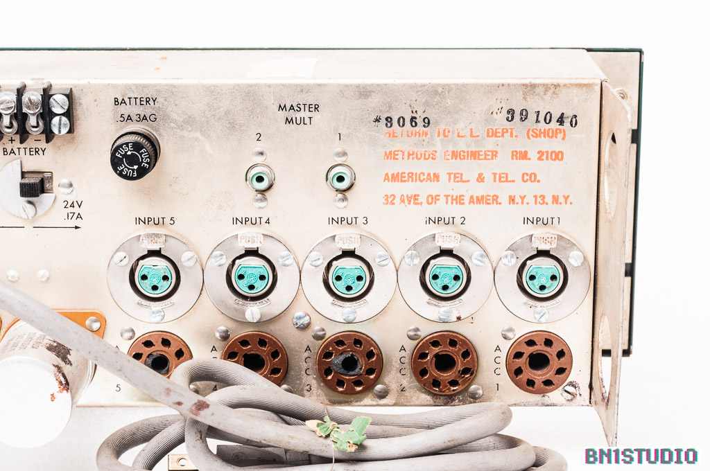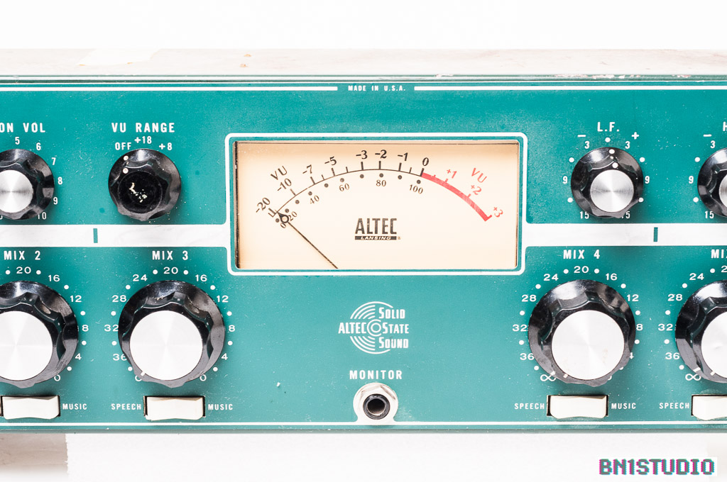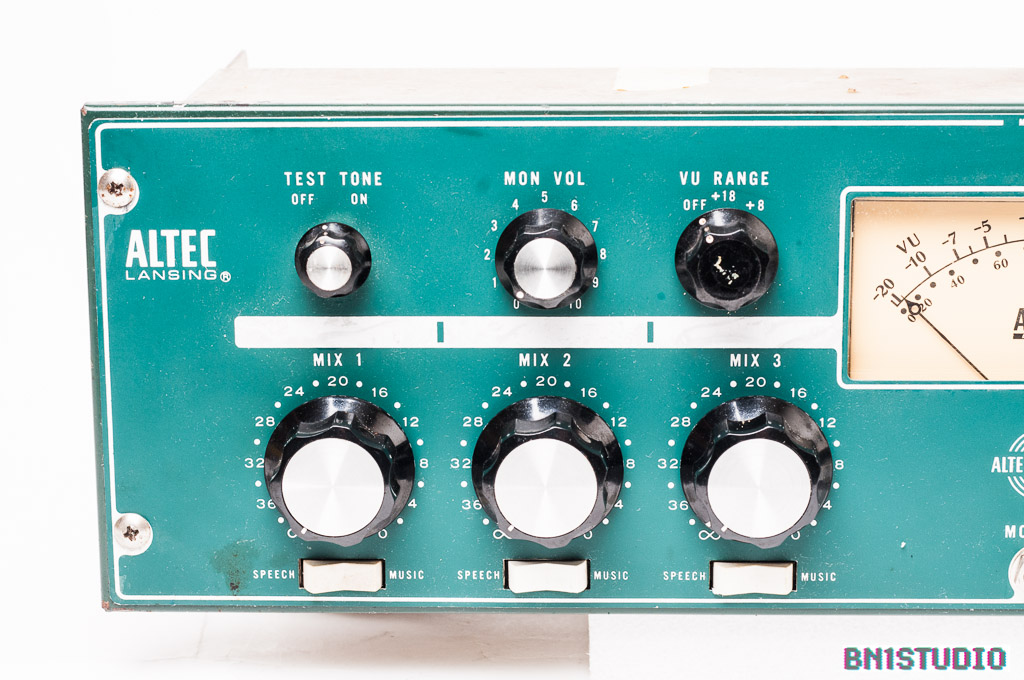 Altec integrated mixer / preamplifier with five inputs and one mono output. These transistor Altec units have lots of mojo and a distinctive sound. Inputs use plug-in modules for mic level, mic with phantom power, line level & etc but blanking plugs can be used for simple line-level inputs
