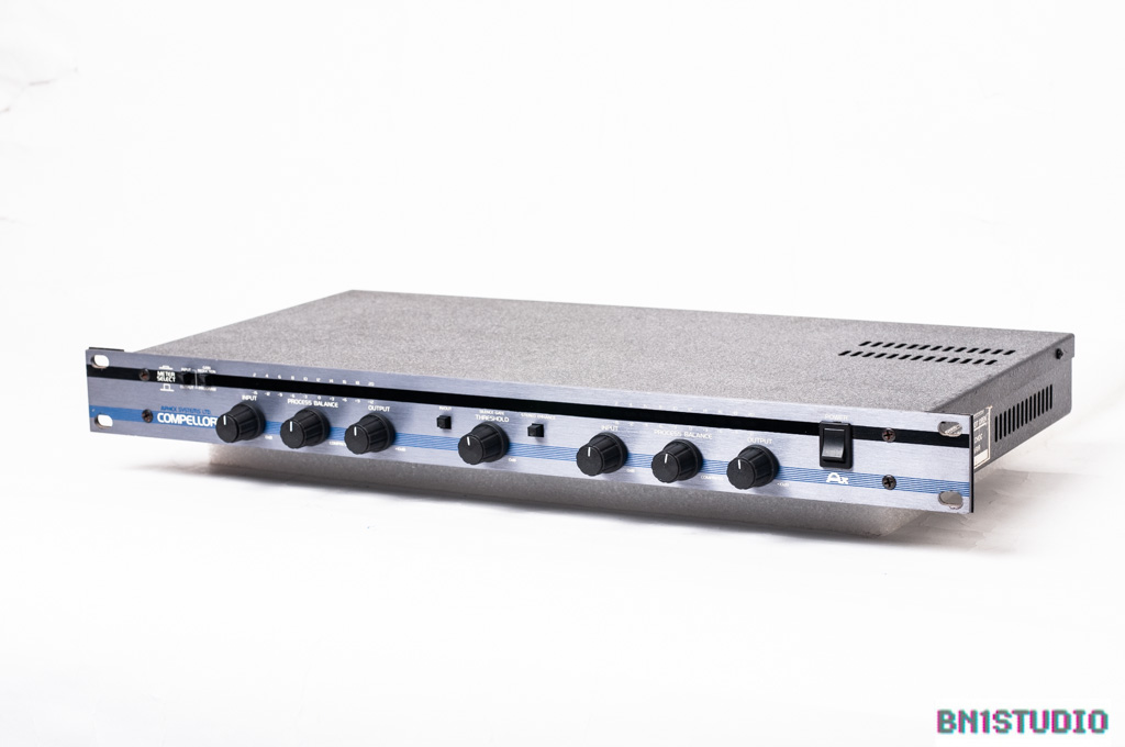 The Compellor is an unusual beast – a combined leveller, compressor & peak limiter. The leveller has a long time constant to allow it to smooth out varying signal levels, while the faster-acting compressor works on more sudden transients. The balance between the two actions is set by the Process balance control