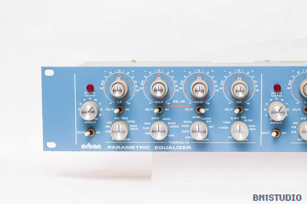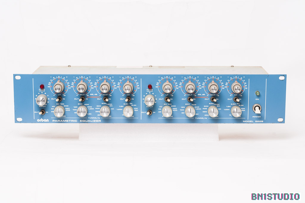 Super-flexible stereo equaliser from broadcast specialists Orban. Probably the best-known Orban product found in studios, the 622B is a four-band parametric equaliser in the classic style. Each band overlaps the adjacent one. Q goes high enough to get nice, tight notches and low enough for broad lifts & cuts