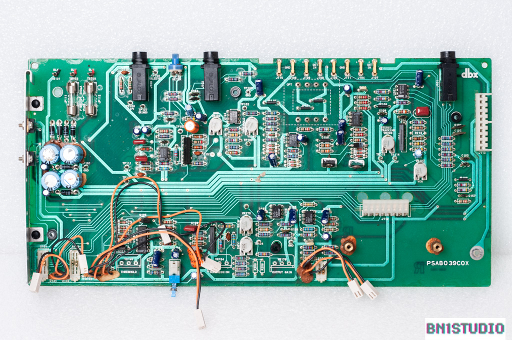 dbx 160X main board. This is the PCB board from an early-model dbx 160X. As you can see from the board, it is the type that plugs into the barrier strip on the back panel of the compressor casing