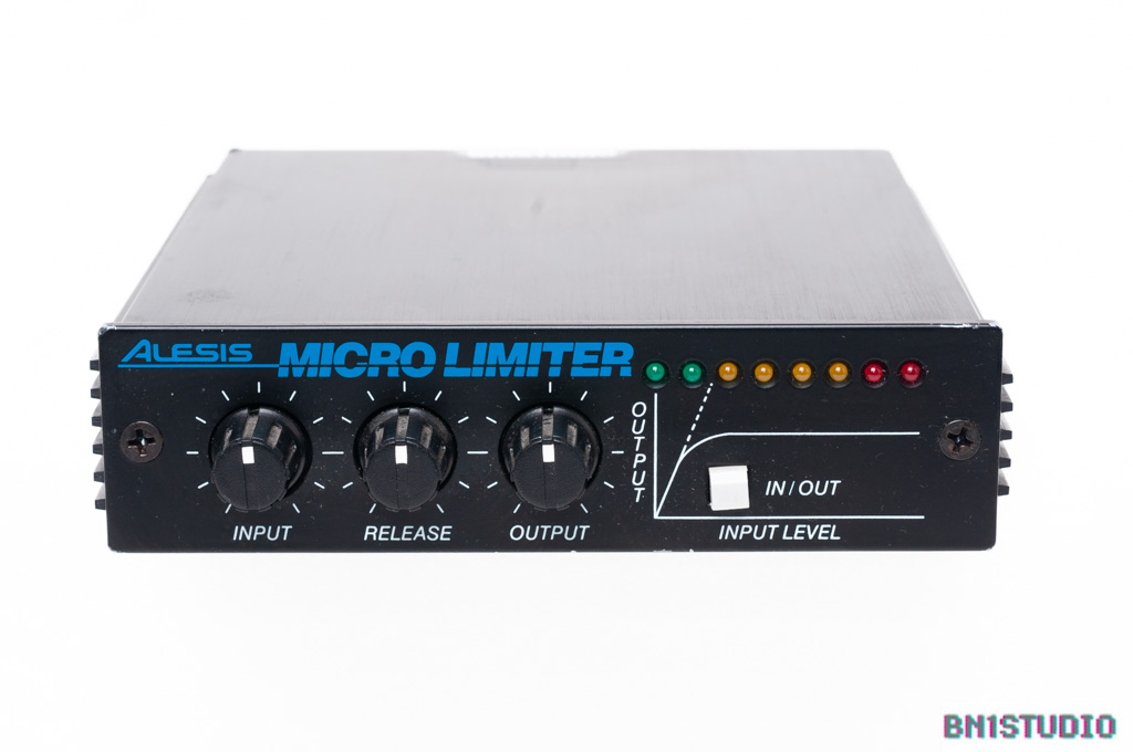 This is “the other” vintage compressor from Alesis. The Micro Limiter is a 1/3U stereo limiter which is famous for smashing drums, nuking snares, mullering cymbals and squashing bass guitar