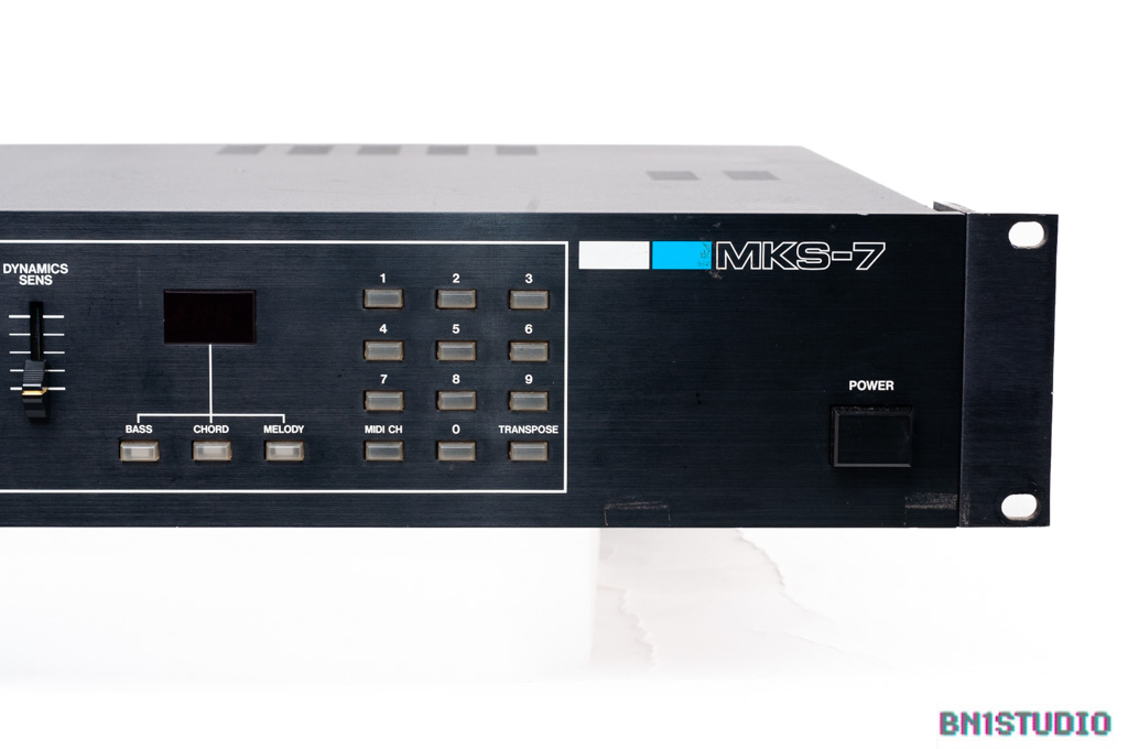 “This has to be the most underatted of all Rolands analogue famaliy. It is incredible. The sonic multitimbral power of 3 juno 106S AND A TR707 DRUM MACHINE in a single rack! Isane, if you know how great the juno 106 is for bass, strings pads & effects. You will understand how special the MKS7 is”
