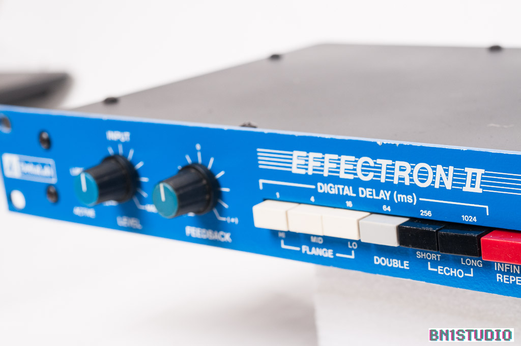 I’m a big fan of Deltalab Effectrons – they’re easy to use, fun and have lots of character. An Effectron is like a Lexicon PCM42 with a naughty side to it. Like the Lexicon, an Effectron will do nice, clean repeats, but will also deliver grungy, lo-fi sounds when overloaded, and weird helicoptering, pitch-shifting delays by changing the Delay Factor. It’s the ultimate antidote to software-based effects!
