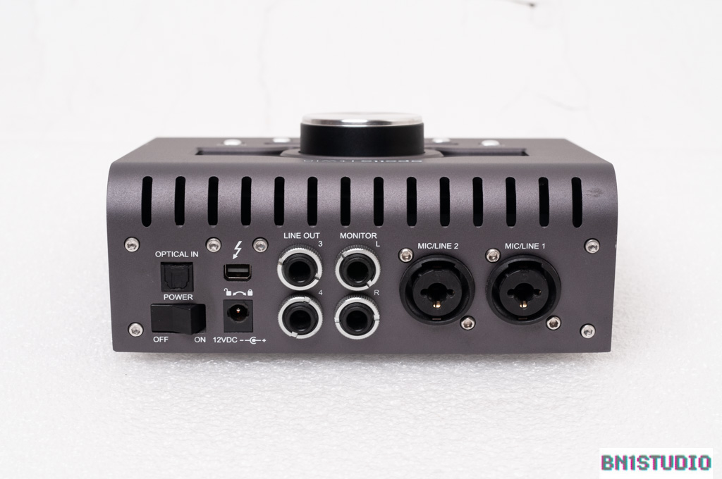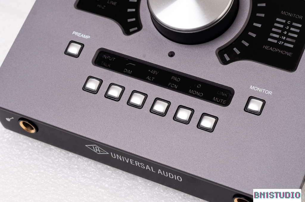 Where the Apollo score over traditional interfaces is in the provision of studio requirements like monitor dim, mute & mono switching, alternate speakers, talkback (via an integrated microphone) and a dedicated headphone output